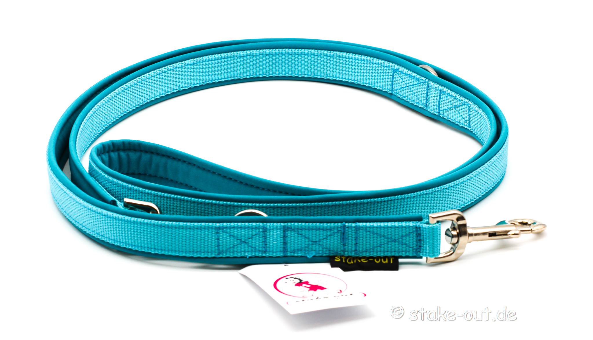 Führleine 1 Meter mit SoftshellpolsterungDiese Leine ist 1 Meter lang mit Handschlaufe. Sie ist gefertigt aus hochwertigem Gurtband welches einseitig mit Softshell gepolstert wird. Dadurch ist die Leine sehr angenehm zu tragen, vor allem bei zugstarken Hunden. An einem Ende befindet sich eine Handschlaufe am anderen Ende ein Zinkdruckgusskarabiner. Die Leine besticht durch ihre Qualität und Optik und ist absolut passend zu den Namenshalsbänder oder den Führgeschirr.Wahlweise gefertigt aus 16mm, 20mm oder 25mm breitem Gurtband Durch die Polsterung erhöht sich die Gesamtbreite der Leine um etwa 8mm. Da es sich um eine Sonderanfertigung handelt, ist dieser Artikel vom Umtausch ausgeschlossen! Hersteller Information: Stake-Out Hundezubehör Inh. Marco Webers Am Erzschutt 11 66620 Nonnweiler Tel. 06873-669786 www.stake-out.de