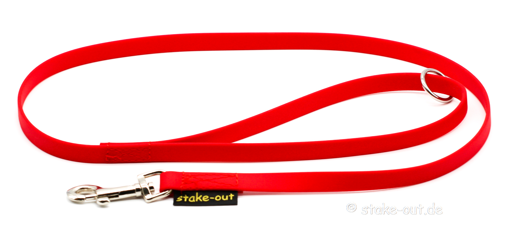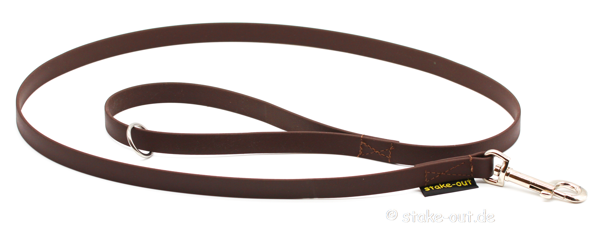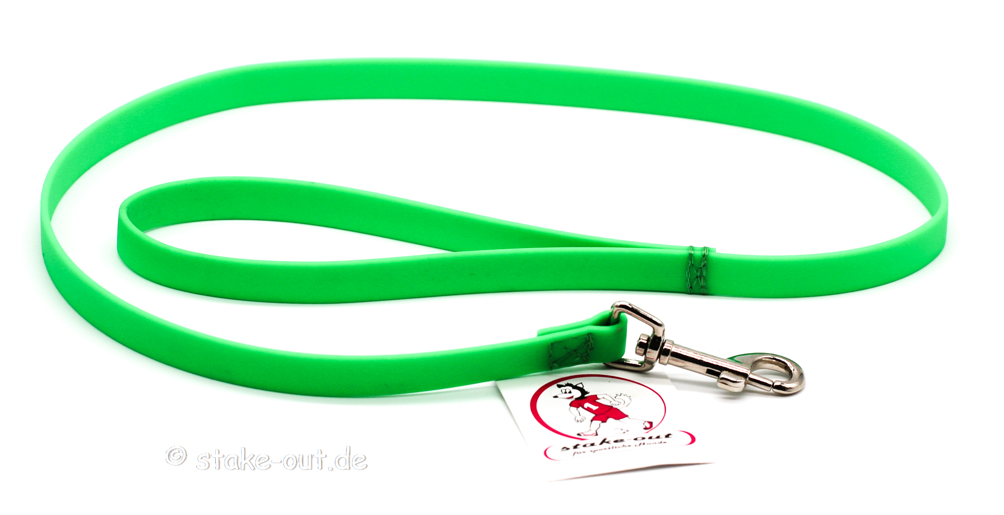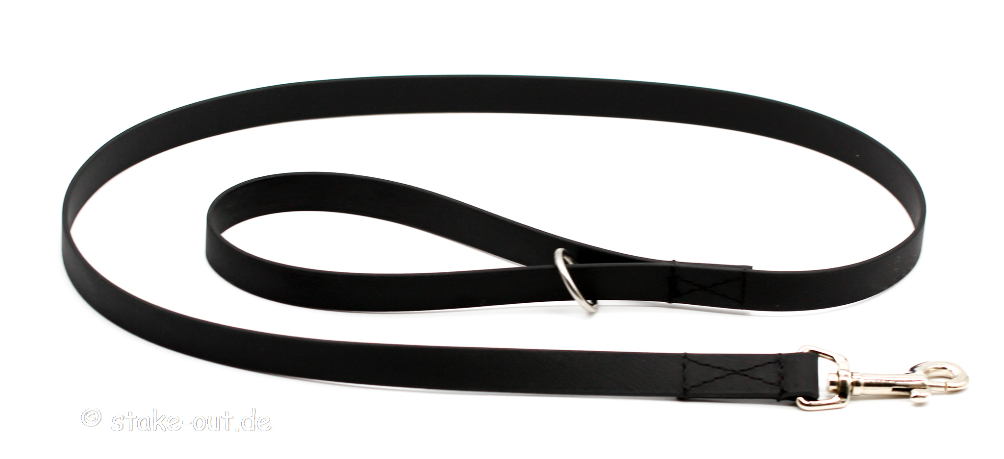 Verstellbare Führleine aus Biothane 2 Meter lang in vielen Farben erhältlich 2-fach verstellbar wahlweise erhältlich in den Breiten 9,12,16 und 19mm sehr robustes Material Wir fertigen diese Leinen ausschließlich mit hochwertigen Karabiner aus Edelstahl oder Messing! Biothane:MaterialkundeBio-Thane ist ein US-Patent. Es wurde für Pferdetrensen und Halfter entwickelt. Es sollte haltbarer und langlebiger als Leder sein und absolut wasserfest. Dennoch sollte die Geschmeidigkeit und der Griff von echtem Leder beibehalten werden. Bio-Thane erfüllt diese Bedingungen! Biothane Ausrüstung können Sie draußen bei jedem Wetter liegen lassen. Sie ist praktisch unverrottbar, absolut reißfest und formbeständig.- wasserfest- bleibt geschmeidig auch bei extremen Temperaturen- UV-beständig; kein Verblassen der Farben- antibakteriell und schimmelfrei- desinfizierbar und hygienisch- lederähnliches Aussehen