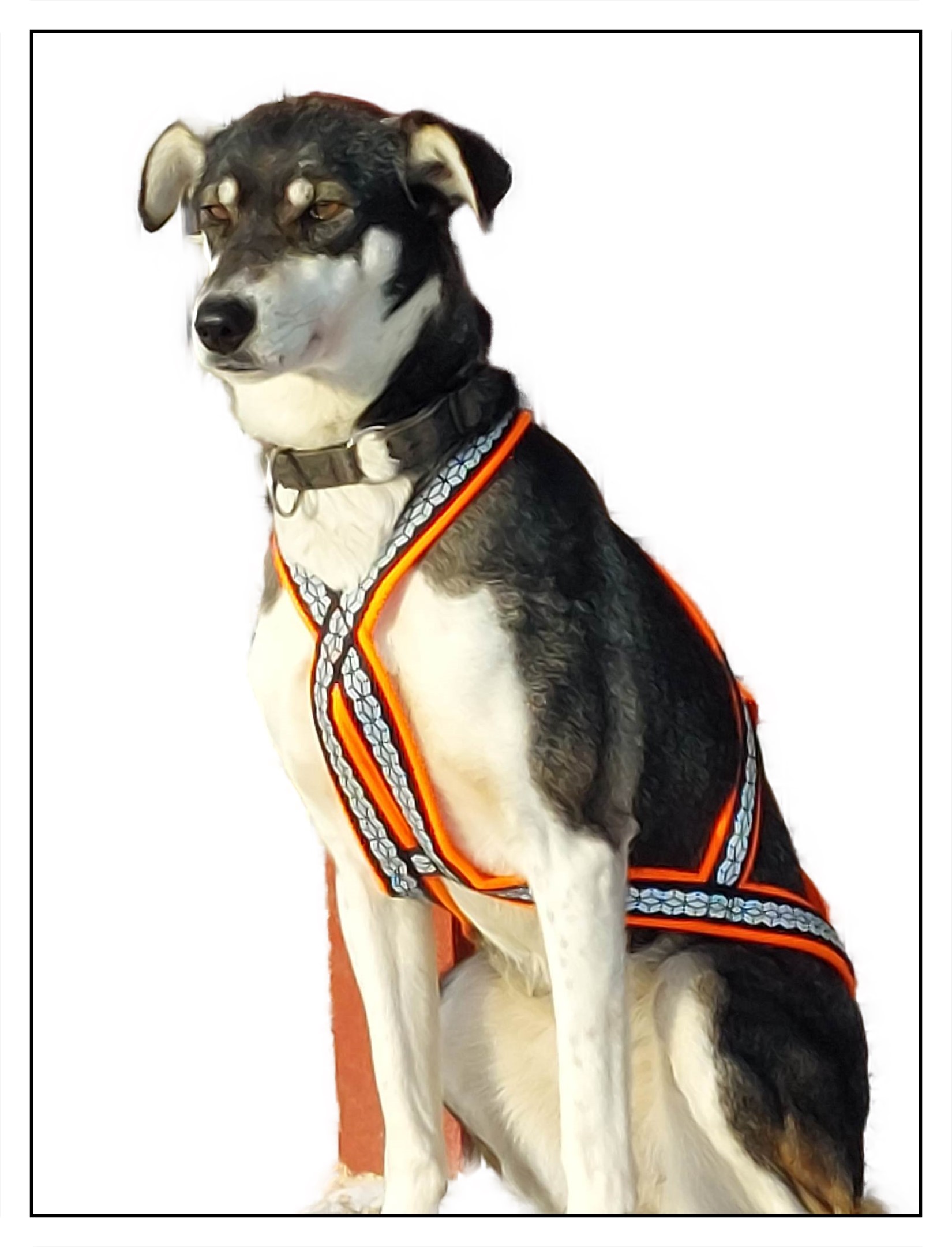 Durch seinen doppelten Brustgurt liegt die Brust des Hundes zwischen diesen 2 Gurten und verhindert dadurch das hin-und herrutschen des Geschirrs am Hund. Dadurch verhindert man ein Wundscheuern des Hundes und "Harnessbrand"